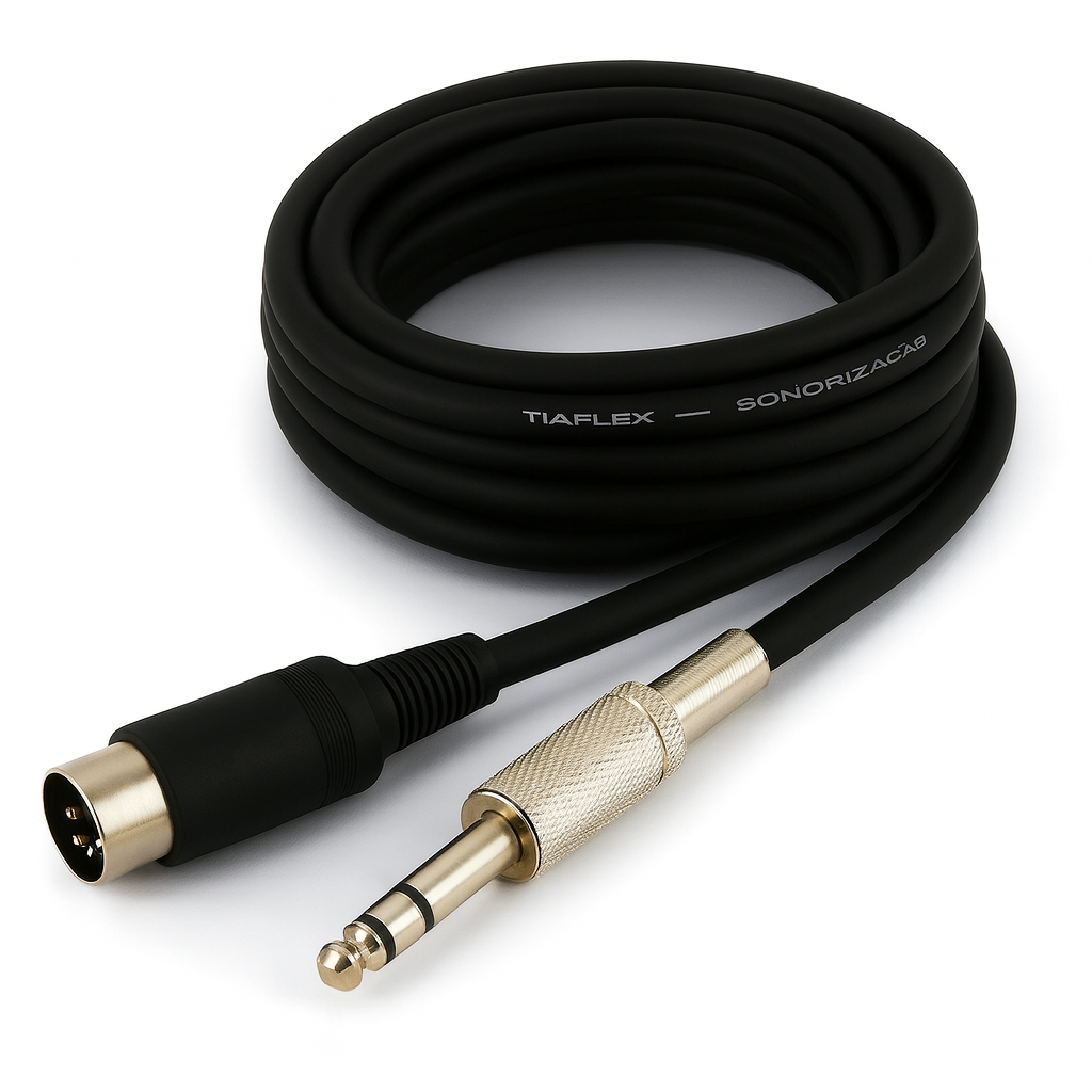 • Conectores: DIN 5 pinos macho / P10 TRS macho 6,35 mm