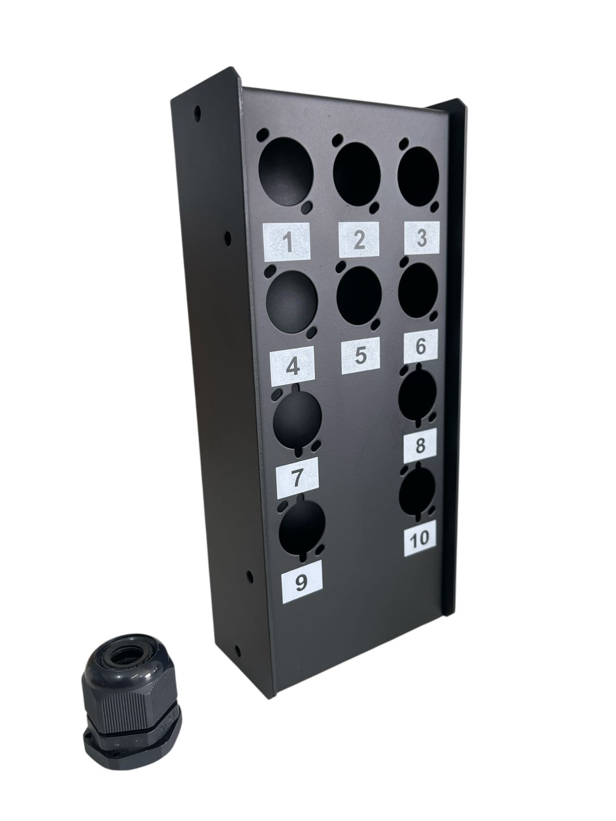 No cotidiano, a Caixa de Medusa 10 Vias com Conector Prensa Cabo é indispensável para setups que demandam múltiplas conexões de áudio, vídeo, iluminação ou dados. Seja em estúdios de gravação, palcos de eventos, instalações de som e imagem, ou até mesmo em ambientes industriais, este produto permite agrupar e organizar cabos de forma centralizada. O conector prensa cabo, feito de nylon, assegura que os cabos permaneçam firmemente fixados, prevenindo danos e falhas de sinal causadas por movimentos ou tensões. Facilita a montagem e desmontagem de sistemas, tornando-o perfeito para uso itinerante ou instalações permanentes que exigem confiabilidade.