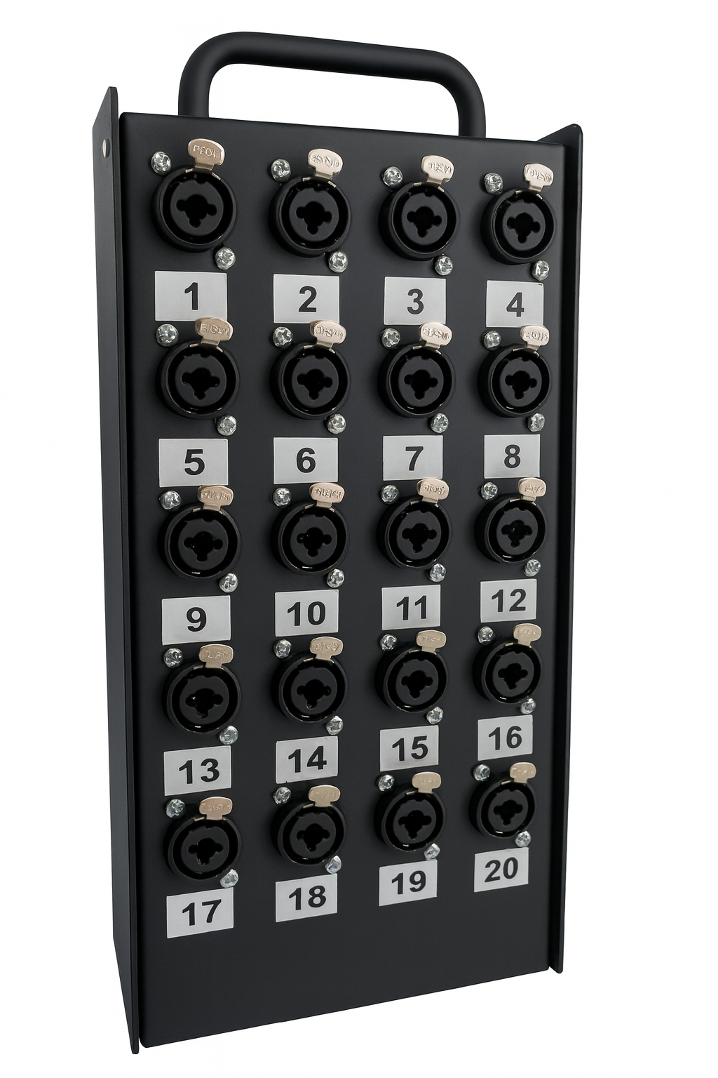 A Caixa Medusa 20 Vias é ideal para organização e distribuição de sinais em palcos, estúdios e eventos. Equipada com conectores combo (XLR fêmea + P10 TRS), oferece praticidade e compatibilidade em diferentes cenários de áudio profissional.