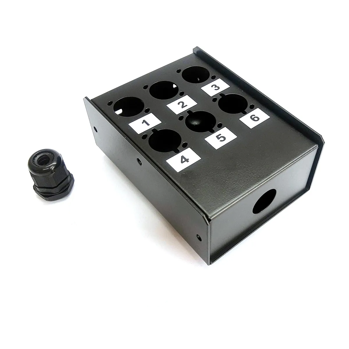 A Caixa de Medusa 6 Vias com Conector Prensa Cabo é a solução ideal para transmissão de áudio em eventos ao vivo, estúdios de gravação e performances musicais. Com design robusto em metal, a caixa de medusa se destaca pela qualidade e durabilidade.