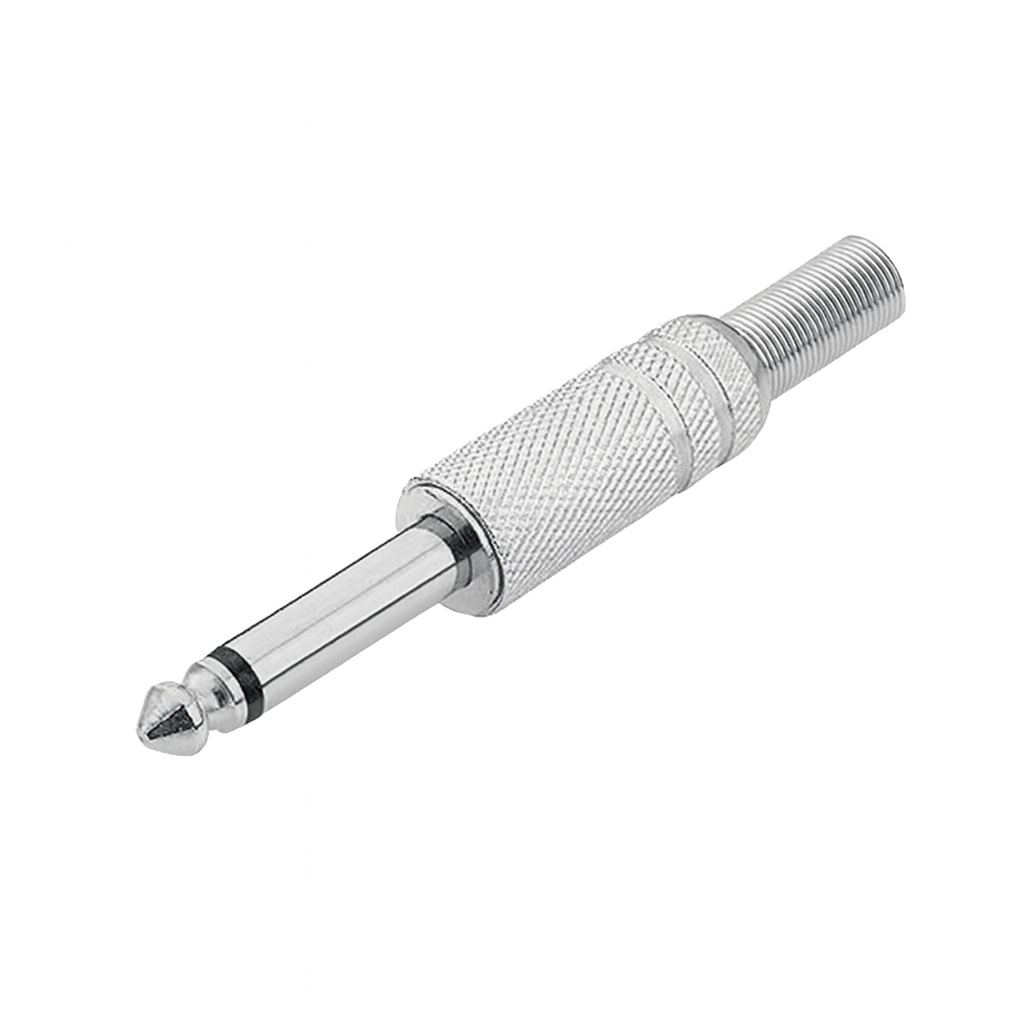 Plug P10 Macho Mono Níquelado para montagem de cabos de áudio